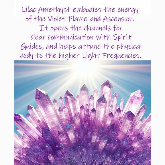 Lilac Amethyst is a rare, ethereal form of amethyst, glowing in the same soft lilac hue as spring blossoms. Cherished for its connection to the Violet Flame and Ascension energies, this gentle stone helps open the channels for clear communication with Spirit Guides while attuning the physical body to higher Light Frequencies. Its vibration is serene, uplifting, and deeply supportive for those walking a spiritual path.